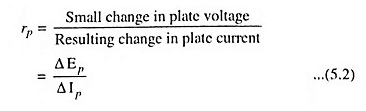 Cette résistance interne offerte par la diode est connue sous le nom de résistance à la plaque. La résistance à la plaque d’une diode est principalement due à la charge d’espace négative et dans une moindre mesure dépend de la taille physique et de l’espacement des électrodes.
